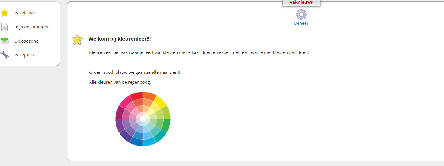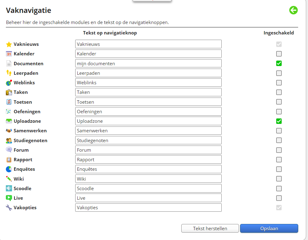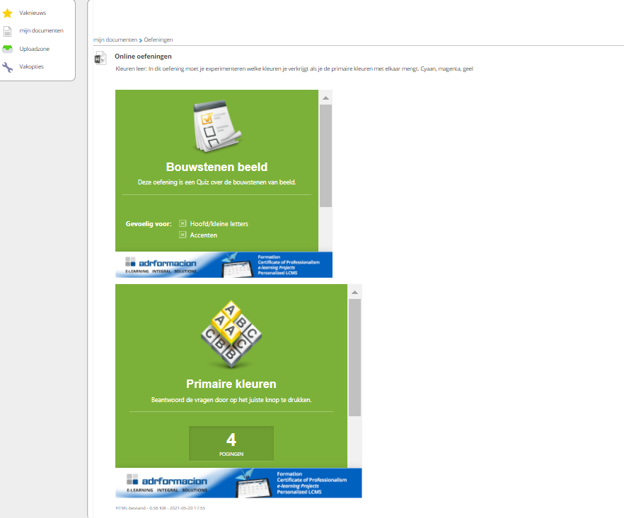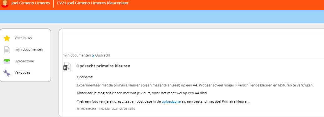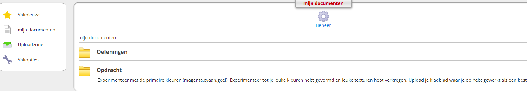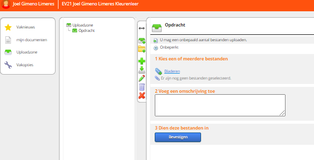Mijn vaknavigatie. Hier is alleen maar de uploadzone en mijn documenten ingeschakeld.